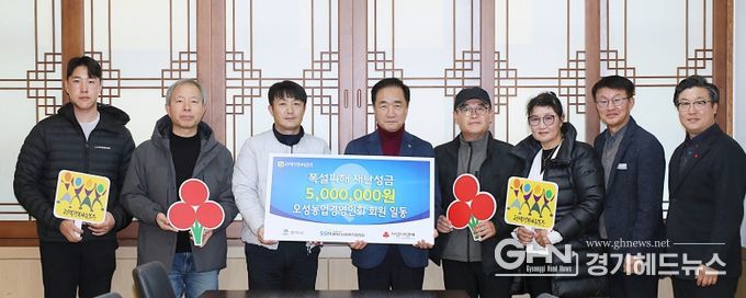 경기헤드뉴스 성미연 기자 | 오성농업경영인회는 지난 10일 평택시청 대외협력실에서 평택행복나눔본부에 이웃돕기 성금 500만 원을 전달했다.