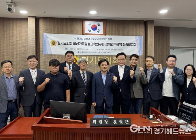 경기헤드뉴스 성미연 기자 | 경기도의회 여성가족평생교육연구회는 9월 9일 오후에 경기도의회 여성가족평생교육위원회 회의실에서 '경기도 중장년 진로교육 지원방안 연구' 최종보고회를 개최했다.