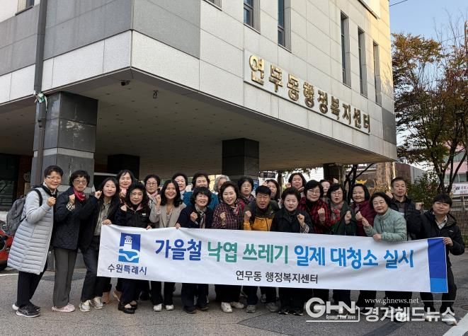 경기헤드뉴스 성미연 기자 | 수원시 장안구 연무동은 지난 7일 본격적인 낙엽철을 맞아 쾌적한 거리 환경을 조성하기 위해 낙엽 쓰레기 일제 정비 활동을 실시했다.