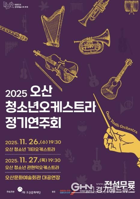 경기헤드뉴스 최보영 기자 | 오산문화재단이 주최하고 오산시가 후원하는 ‘2025 오산 청소년 오케스트라 정기연주회’가 오는 11월 26일부터 27일까지 오산문화예술회관 대공연장에서 이틀간 개최된다. 공연은 전석 무료로 시민 누구나 관람할 수 있다.