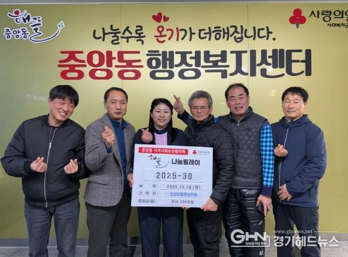 백경희 중앙동장은 “올해도 변함없이 따뜻한 나눔을 실천해 주신 오산오일장상인회에 깊이 감사드린다”며 “기탁해주신 성금은 도움이 필요한 이웃들에게 맞춤형 복지로 연계해 촘촘한 인적·물적 안전망을 구축하는 데 활용하겠다”고 밝혔다.