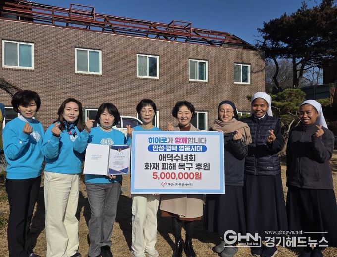 후원금 전달식은 화재 피해가 발생한 미리내성요셉애덕수녀회에서 진행됐으며, 안성·평택 영웅시대 회원들은 갑작스러운 화재로 어려움을 겪고 있는 이웃들의 일상 회복을 돕고자 십시일반 정성을 모았다.