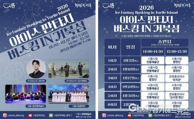 경기헤드뉴스 임채헌 기자 | 시흥시는 지난 연말에 진행된 ‘2025 시흥 사운드 오브 윈터’의 열기를 잇는 후속 문화예술 프로그램으로, 겨울철 거북섬을 찾는 시민과 관광객에게 풍성한 즐길 거리를 제공하고자 ‘2026 아이스 판타지 버스킹 인 거북섬’을 운영한다.