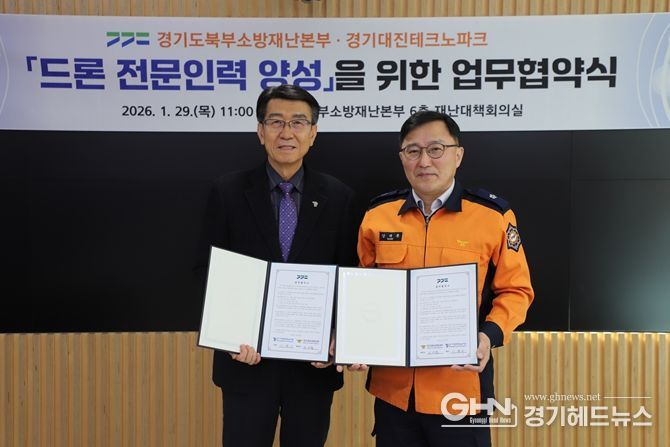 경기헤드뉴스 성미연 기자 | (재)경기대진테크노파크(원장 안준수)와 경기도북부소방재난본부(본부장 강대훈)는 경기북부 지역의 소방용 드론산업 육성과 전문인력 양성을 위해 업무협약(MOU)을 체결했다고 밝혔다.