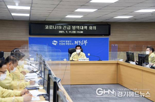 경기헤드뉴스 임채헌 기자 | 의정부시는 11일 시청 재난안전상황실에서 정부의 수도권 새로운 거리두기 4단계 적용방침 따라 선제적 대응 체계를 마련하기 위해 관련 국장, 부서장 등 30여 명이 참석한 가운데 긴급 방역대책 회의를 개최했다.
