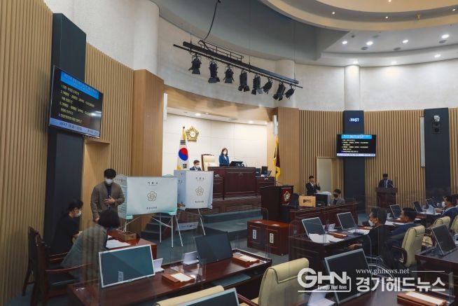 당선인들은 7월 14일 14시에 열린 제6차 본회의에서 투표를 통하여 김경희 의장(더불어민주당)과 오문섭 부의장(국민의힘)을 각각 선출했다. 오문섭 의장직무대행의 주재로 출석의원 25명의 투표 중 유효투표 24표, 찬성 23표로 선출된 김경희 의장은 재선의원이자 화성시의회 사상 첫 여성의장으로 앞으로 2024년 6월 30일까지 전반기 화성시의회를 이끌게 된다.