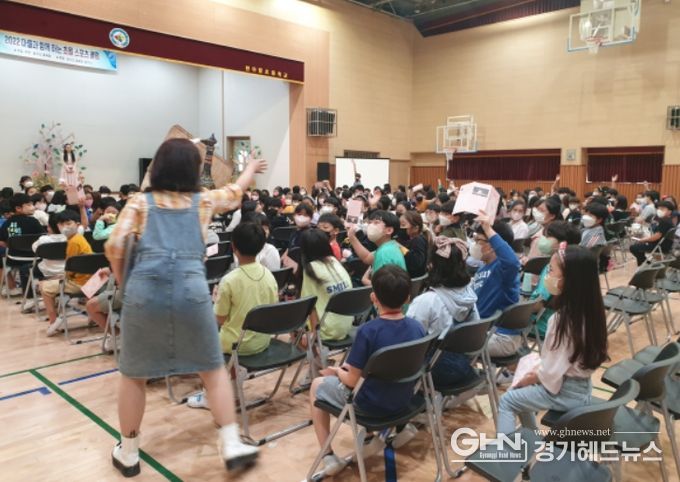 경기헤드뉴스 성미연 기자 | 광주하남교육지원청 한아람초등학교 4학년 학생들과 선생님이 2022년 9월 6일 한아람초 강당(늘해랑터)에 모여 국내 최고의 오페라단인 국립 오페라단의 “사랑의 묘약” 공연을 관람했다.