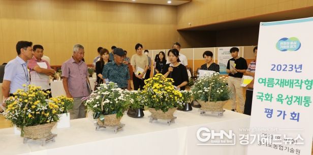 이번 평가회에서는 참석자들을 대상으로 ‘화이트버블’, ‘골든스타’ 등 경기도가 개발한 국화 신품종과 여름철에도 잘 자라는 85계통에 대한 재배 특성을 소개하고 우수 계통을 선발했다.