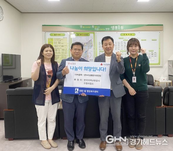 경기헤드뉴스 성미연 기자 | 지난 9일 한국지역난방공사 수원사업소는 추석 명절을 맞이하여 영통1동 행정복지센터에 온누리상품권 100만원을 기탁했다.