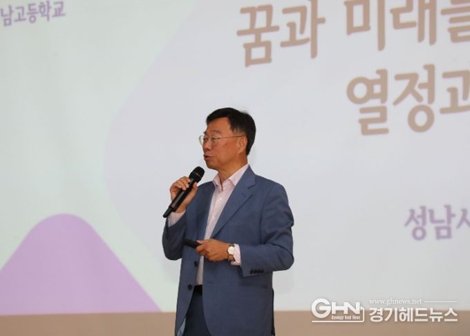 경기헤드뉴스 성미연 기자 | 신상진 성남시장은 10월 30일 오후 1시 30분 자율형 공립고교인 성남고등학교(중원구 성남동) 2층 강당에서 ‘꿈과 미래를 위한 열정과 도전’을 주제로 한 특별 강연을 했다.