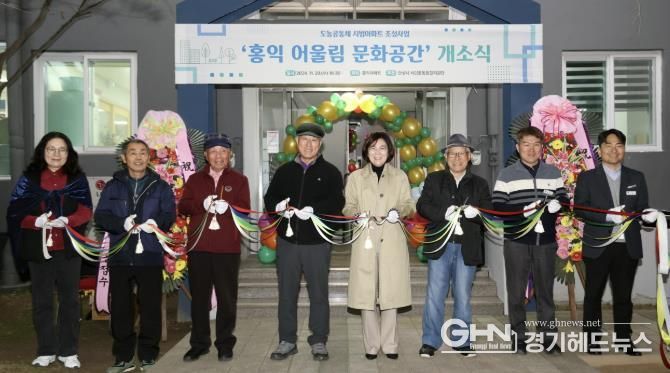 경기헤드뉴스 성미연 기자 | 지난 10월 20일 안성시 금광면 홍익아파트 116동 1층 리모델링을 통해 주민커뮤니티 공간 ‘홍익 어울림 문화공간’을 조성하고 개소식을 가졌다.