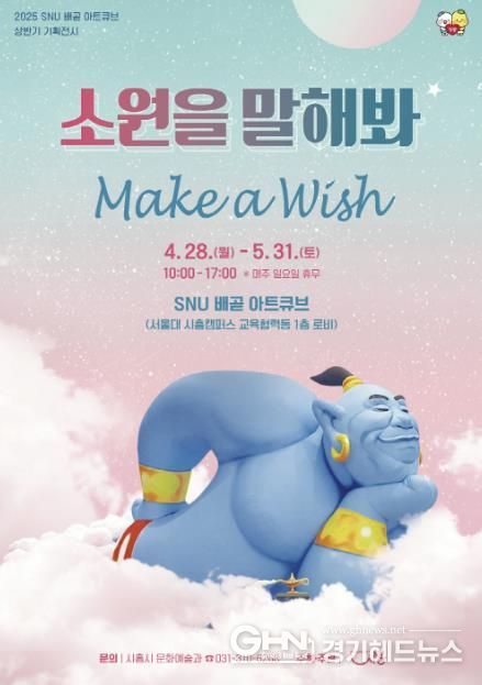 경기헤드뉴스 성미연 기자 | 시흥시가 가정의 달을 기념해 4월 28일부터 5월 31일까지 SNU 배곧 아트큐브(서울대학교 시흥캠퍼스 교육협력동 1층)에서 2024년 상반기 기획전시 ‘소원을 말해봐’를 개최한다.