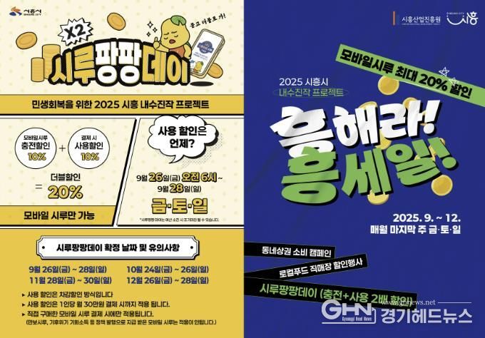 시흥시는 지난 달 말부터 지역화폐 모바일 시루를 최대 20% 할인하는 이벤트 ‘시루팡팡데이’를 추진 중이다. 사실상 시흥시의 2025년 하반기 상권 활성화 사업의 핵심인 이번 이벤트는 시흥시 지역화폐 모바일 시루를 충전 시 7~10%, 시루 가맹점에서 결제 시 추가로 7~10%할인 하는 것을 골자로 한다.