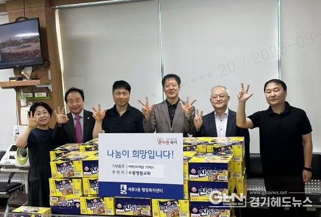 경기헤드뉴스 성미연 기자 | 수원영원교회는 지난 22일, 추석 명절을 맞이하여 관내 취약계층을 위해 세류3동 행정복지센터에 라면(20개입) 70박스를 후원하며 이웃사랑 나눔을 실천했다.