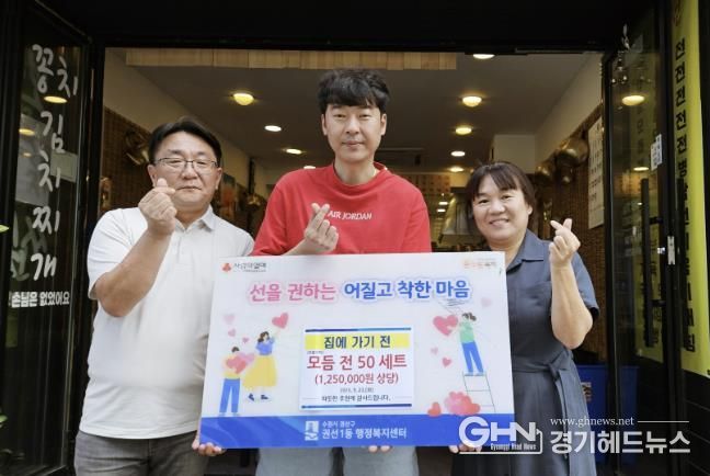 경기헤드뉴스 성미연 기자 | 수원시 권선구 권선1동 소재한 ‘집에가기 전’의 이호섭 대표가 다가오는 추석 명절을 맞아 지난 23일, 권선1동 내 기초생활수급자 50가구에 125만원 상당의 모듬전 교환권을 기탁하며 따뜻한 이웃 사랑을 실천했다.