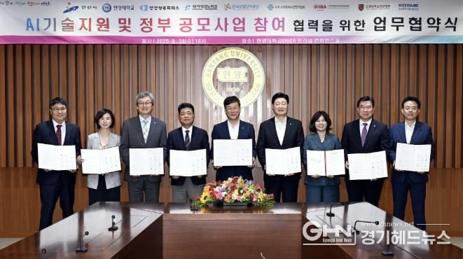 안산시는 지난 24일 한양대학교ERICA 프라임 컨퍼런스홀에서 ‘AI기술지원 및 정부 공모사업 참여 협력을 위한 업무협약식’을 개최했다고 25일 밝혔다.