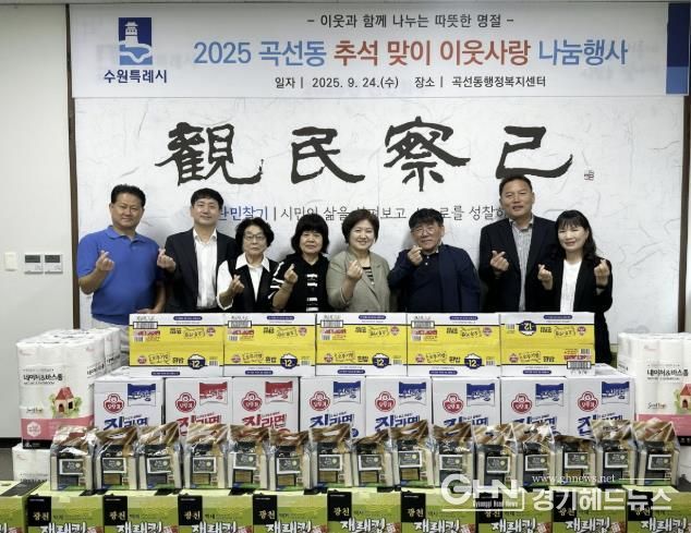 경기헤드뉴스 성미연 기자 | 수원시 권선구 곡선동 행정복지센터는 지난 25일, 민족 최대 명절인 추석을 맞이하여, 어려운 이웃들이 따듯한 명절을 보낼 수 있도록 이웃사랑 나눔 전달식을 개최했다.