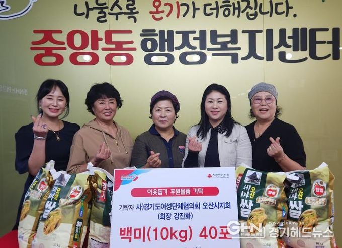 경기헤드뉴스 성미연 기자 | 사단법인 경기도여성단체협의회 오산시지회는 지난 10월 1일, 추석 명절을 앞두고 지역 내 어려운 이웃을 위해 백미(10kg) 5포씩을 오산시 관내 8개 동 행정복지센터에 각각 기탁했다.