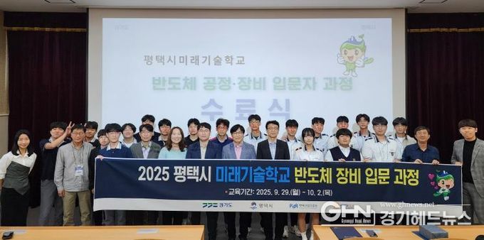 경기헤드뉴스 성미연 기자 | 평택시는 지난 1일 ‘2025년 미래기술학교 장비 입문 과정’ 수료식을 열고 총 19명의 수료생을 배출했다. 이번 교육은 관내 특성화고와 마이스터고 3학년 가운데 반도체 기업 취업을 희망하는 학생들을 대상으로 운영된 것이 특징이다.