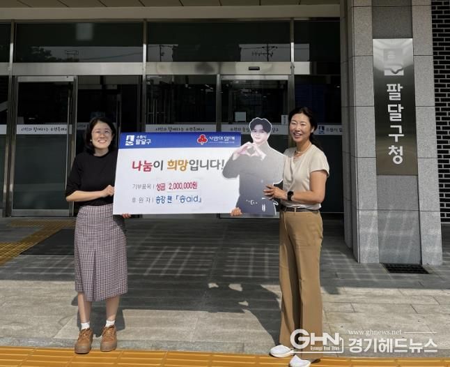 이상균 팔달구청장은 “따뜻한 나눔을 실천해주신 송강 팬모임 ‘송aid’에 깊이 감사드린다”며, “전달해주신 성금은 어려운 아동·청소년들에게 소중히 쓰일 수 있도록 최선을 다하겠다”고 말했다.