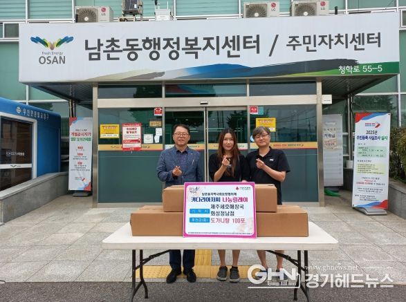 경기헤드뉴스 성미연 기자 | 오산시 남촌동행정복지센터(동장 정찬웅)는 지난 10월 2일, 제주세호해장국 화성정남점(대표 이은정)으로부터 추석 명절을 맞아 취약계층 지원을 위한 도가니탕 100개(120만 원 상당)를 전달받았다고 밝혔다.