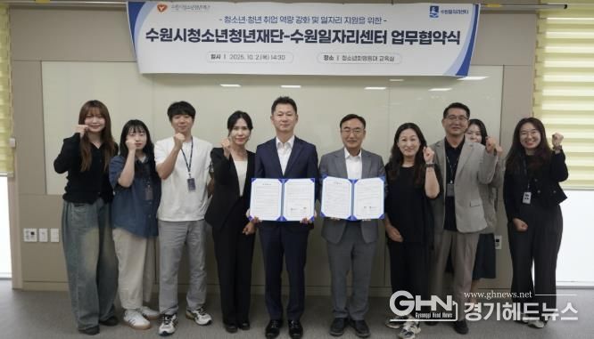 경기헤드뉴스 성미연 기자 | 수원시청소년청년재단과 수원일자리센터는 10월 2일, 청소년청년의 취업 역량 강화와 일자리 지원을 위한 업무협약(MOU)을 체결했다.