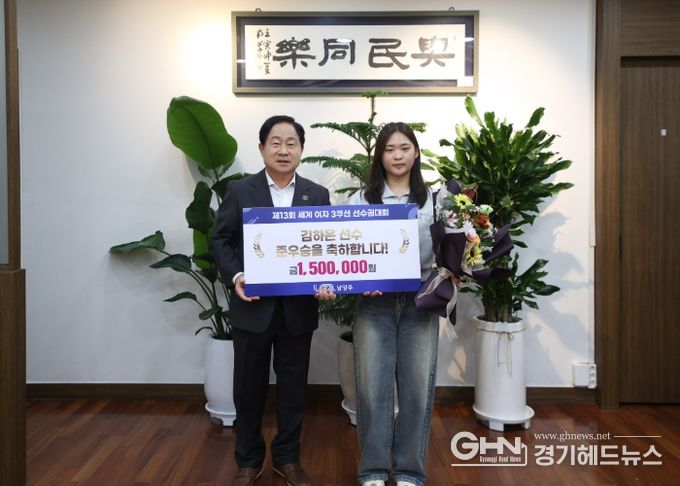 경기헤드뉴스 임수연 기자 | 남양주시는 10월 13일 시장 집무실에서 ‘제13회 세계 여자 3쿠션 선수권대회’ 준우승을 차지한 김하은 선수에게 포상금 150만 원을 전달했다고 밝혔다.