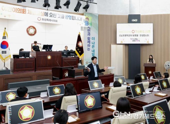 경기헤드뉴스 성미연 기자 | 화성특례시의회는 13일, 남양읍에 위치한 신남초등학교 학생들을 대상으로 ‘어린이의회 체험 교실’을 운영했다.