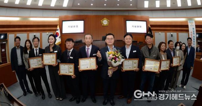 경기헤드뉴스 성미연 기자 | 오산시의회는 16일 의회 본회의장에서 ‘제37회 오산시민의 날’을 기념해 지역사회 발전에 기여한 시민 8명에게 의장 표창을 수여했다.