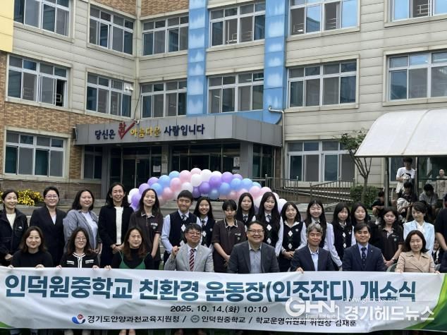 이번에 조성된 인덕원중학교 친환경 운동장은 기존 노후 흙 운동장을 정비하고, 환경 친화적 소재의 인조잔디 및 충진재를 사용해 학생들의 건강과 안전을 고려한 최신 체육시설로 탈바꿈했다.