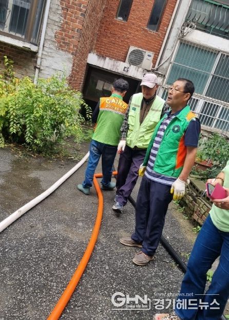 경기헤드뉴스 성미연 기자 | 평택시 지산동에 있는 빌라 지하실에 지난 14일 침수가 발생했다. 이에 지산동 자율방재단은 즉시 현장으로 출동해 단원 8명과 함께 긴급 배수 작업을 실시하며 주민 피해 최소화에 나섰다.