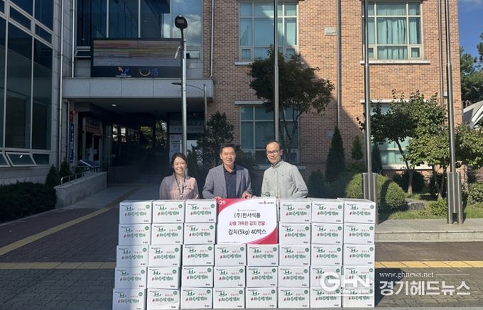 경기헤드뉴스 성미연 기자 | 시흥시 정왕본동에 있는 ㈜한서식품은 지난 10월 16일 정왕본동 행정복지센터(동장 박래천)의 어려운 이웃을 위해 김치(5kg) 40상자를 기부했다.