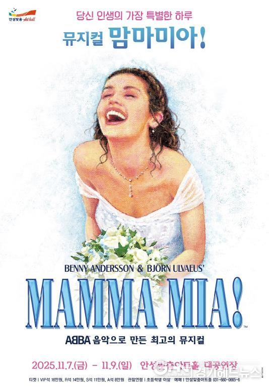 경기헤드뉴스 임수연 기자 | 안성맞춤아트홀은 오는 11월 7일부터 9일까지 대공연장에서 세계적인 히트 뮤지컬 '맘마미아!'를 무대에 올린다. 세대를 초월한 명곡과 유쾌한 스토리로 사랑받아온 이번 작품은 남녀노소 누구나 즐길 수 있는 최고의 힐링 뮤지컬이다.