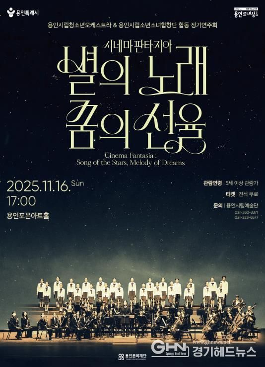 경기헤드뉴스 임수연 기자 | (재)용인문화재단은 오는 11월 16일 용인포은아트홀에서 용인시립청소년오케스트라와 용인시립소년소녀합창단 합동 정기연주회 '시네마 판타지아 : 별의 노래, 꿈의 선율'을 개최한다.