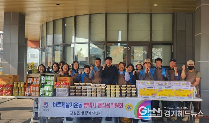 이날 바르게살기운동 팽성읍위원 15여 명이 함께 모여 정성껏 준비한 밑반찬 꾸러미를 직접 포장해 관내 홀몸노인과 저소득 가정 등 취약계층 가구에 전달했다.