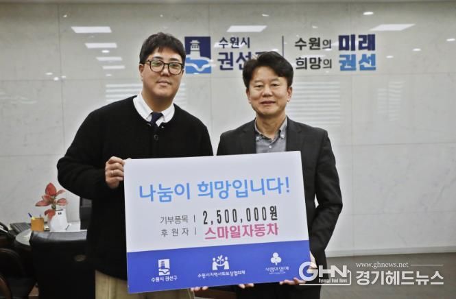 경기헤드뉴스 권준형 기자 | 수원시 권선구는 지난 13일, 관내 스마일자동차(대표 우영진)에서 어려운 이웃을 돕기 위한 후원금 250만원을 기탁했다고 밝혔다.