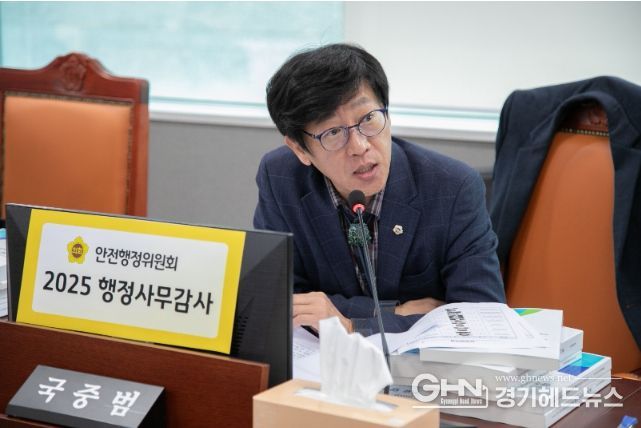 경기헤드뉴스 성미연 기자 | 경기도의회 안전행정위원회 국중범 의원(더불어민주당, 성남4)은 14일 경기도 안전관리실을 대상으로 한 행정사무감사에서 풍수해·지진재해보험 도비 보조금 집행률의 시·군 간 편차가 심각하다고 지적하며, 제도 실효성 제고를 위한 적극적인 대책 마련을 촉구했다.