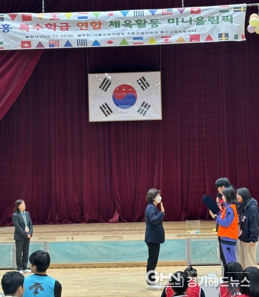 경기헤드뉴스 임채헌 기자 | 시흥교육지원청 특수교육지원센터는 지난 11월 21일 시흥교육청만의 특별한 체육활동-미니올림픽 행사를 성황리에 마쳤다. '파이팅 해야지! 우린 SH(시흥)학생'이라는 제목의 이 행사는 특수교육대상학생들의 건강과 체력증진을 도모하고 사회적 기술과 정서적 안정을 증진하는 데 목적이 있다.