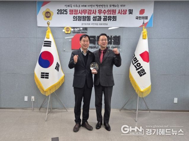 경기헤드뉴스 성미연 기자 | 경기도의회 농정해양위원회 부위원장 윤종영 의원(국민의힘, 연천)이 2025년 경기도의회 행정사무감사에서 도정의 구조적 문제를 집요하게 파고들고 실질적 개선을 촉구한 공로를 인정받아, 24일 ‘2025년 행정사무감사 우수의원’ 표창을 수상했다.