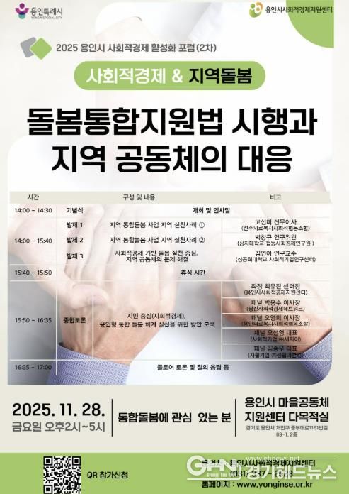 경기헤드뉴스 성미연 기자 | 용인특례시는 오는 28일 오후 2시 용인시 마을공동체지원센터 다목적실에서 ‘2025 용인시 사회적경제 활성화 포럼(2차)’을 개최한다고 25일 밝혔다.