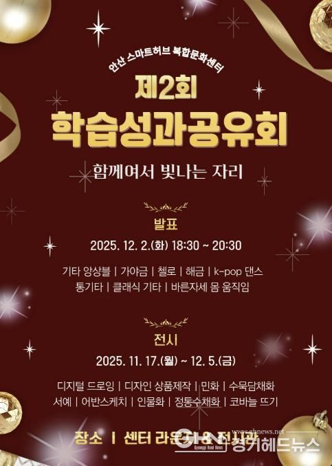이선희 문화체육관광국장은 “학습성과공유회를 통해 한 해 동안 이룬 성취를 되돌아보는 계기가 되기를 바라며, 앞으로도 수강생들이 더욱 성장할 수 있도록 지원해 나가겠다”고 말했다.