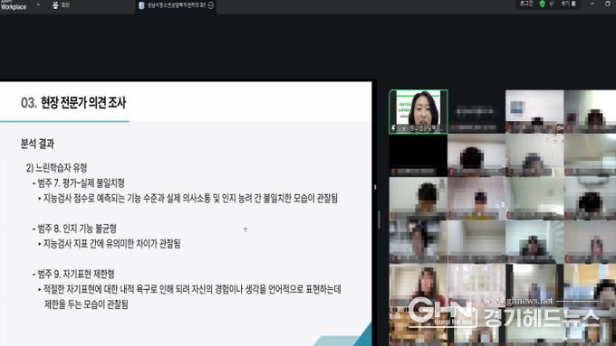 경기헤드뉴스 권준형 기자 | 성남시청소년청년재단 성남시청소년상담복지센터는 전국 청소년 상담자 및 유관기관 전문가 100여 명이 참여한 가운데‘2025년 느린학습자 청소년유형화·개입방안 연구보고서 및 사례집 제작에 따른 현장활용 교육’을 오는 12월 1일 실시간 온라인으로 개최했다고 밝혔다. 이번 교육은 느린학습자 청소년을 깊이 이해하고, 현장에서 즉시 적용할 수 있는 실천적 개입 모델을 확산하기 위해 마련됐다.