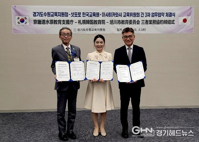 경기헤드뉴스 권준형 기자 | 경기도수원교육지원청은 12월 2일 일본 아사히카와시 교육위원회에서 삿포로한국교육원과 함께 3자 국제교류 업무협약(MOU)을 체결했다. 이번 협약은 한·일 간 교육협력 체제를 제도적으로 구축하고, 경기교육의 우수정책을 해외와 공유하기 위해 마련됐다.