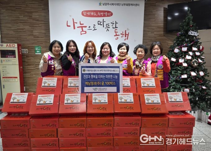 경기헤드뉴스 권민성 기자 | 남양주시는 12월 2일 국제라이온스협회 354-H지구 개나리라이온스클럽이 지역 내 복지취약가정을 위해 5kg 귤 100박스(160만 원 상당)를 남양주시 남부희망케어센터에 후원했다고 밝혔다.