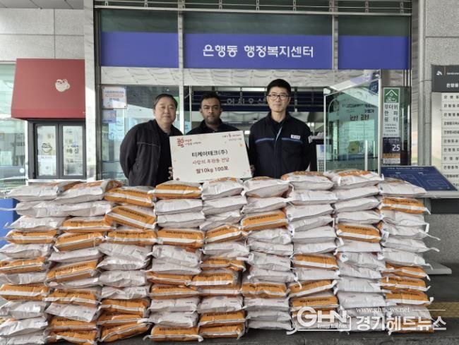 경기헤드뉴스 임채헌 기자 | 시흥시 은행동 행정복지센터에 지난 12월 10일 ㈜티케이테크가 방문해 연말에 도움이 필요한 이웃을 돕기 위해 쌀 10kg 100포를 전달했다.