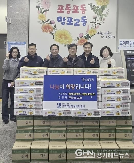 경기헤드뉴스 권준형 기자 | 수원시 영통구 망포2동에 위치한 두란노교회는 지난 16일, 지역 내 취약계층을 돕기 위해 김치 28박스와 햇반 40박스를 망포2동 행정복지센터에 기탁했다.
