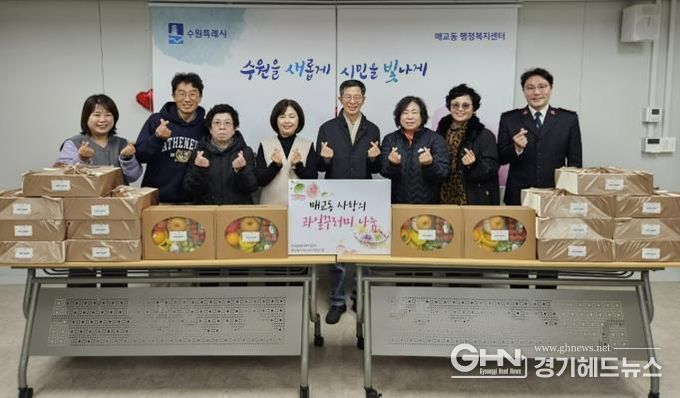 이지효 매교동장은 “이번 과일꾸러미가 추운 겨울을 건강하게 이겨내는 데 작은 보탬이 되길 바란다”며 “앞으로도 맞춤형서비스 제공을 통해 세심한 돌봄이 이뤄지도록 노력하겠다”고 말했다.