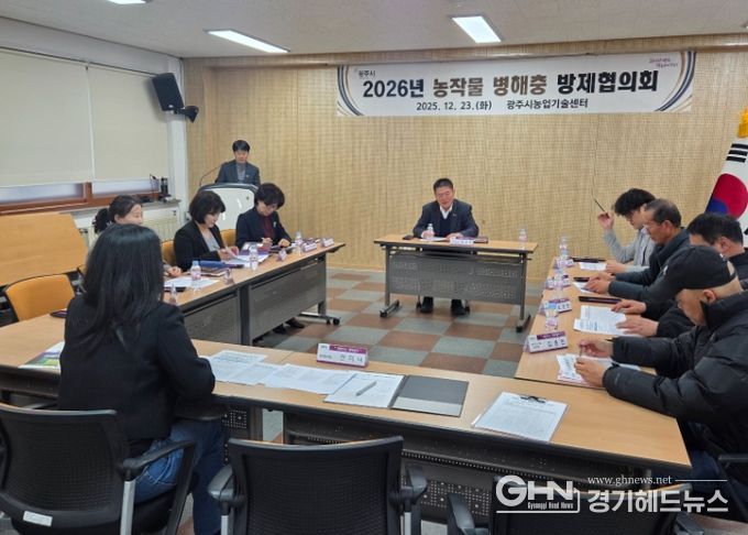경기헤드뉴스 권민성 기자 | 광주시농업기술센터는 23일 행정기관, 농협, 농업인 단체 대표 등 관계자 11명이 참석한 가운데 농작물 병해충 방제협의회를 개최했다.