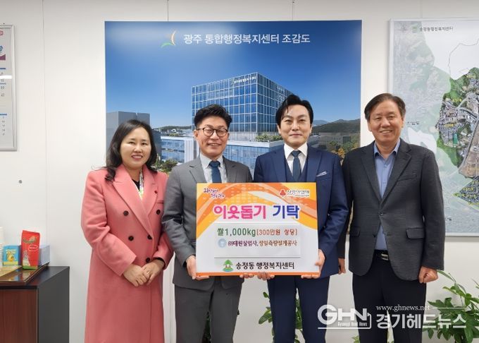 이에 대해 김선영·구자경 송정동 지역사회보장협의체 공동위원장은 “매년 잊지 않고 따뜻한 마음을 전해주시는 두 기업에 깊이 감사드린다”며 “기탁해 주신 소중한 쌀은 도움이 꼭 필요한 이웃들에게 정성껏 전달하겠다”고 전했다.
