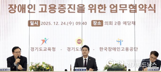 경기헤드뉴스 성미연 기자 | 경기도교육청이 24일 경기도의회 예담채에서 경기도의회(의장 김진경), 한국장애인고용공단(이사장 이종성)과 함께 장애인 고용증진을 위한 업무협약을 체결했다.